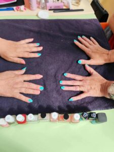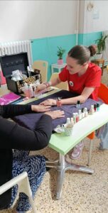 Notre coiffeuse Sylvie vient donner de son temps bénévolement, pour coiffer nos bénéficiaires, moment toujours apprécié 😊 Les soins des ongles ont aussi du succès !