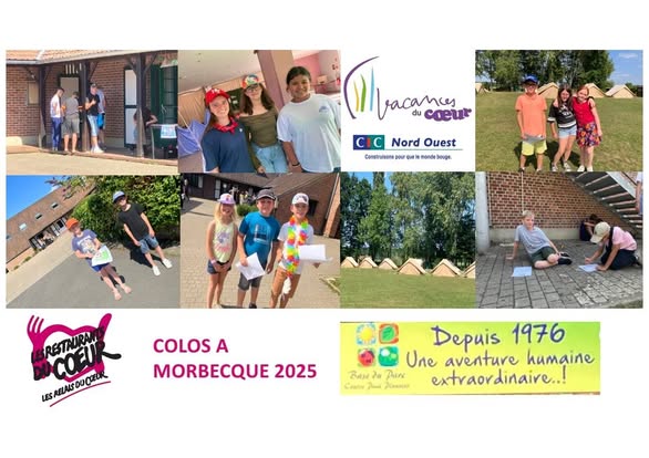 Cette année encore, ce sont 18 Jeunes issus de familles accueillies par les Restos du Coeur qui ont eu la chance de quitter leur quotidien, le temps d’un séjour à la Base du Parc de MORBECQUE. Nous remercions nos partenaires financiers : la CAF, JPA, ANCV et le CIC NORD OUEST, ainsi que notre partenaire Vacances du Coeur, pour la participation et l’organisation de ces séjours pour les enfants.