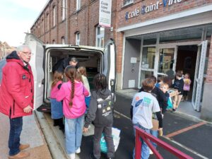 Ecole St Vincent ✨️Action de solidarité à Saint-Vincent✨️ Comme chaque année, l’école a organisé son calendrier de l’avent inversé au profit des Restos du Cœur. Les délégués des différentes classes étaient fiers de pouvoir aider les bénévoles à charger la camionnette! Nous avons récolté 81 kg de dons 🤩. Un grand merci à vous pour votre générosité !