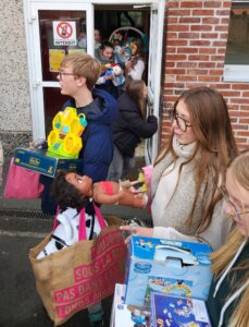 Un groupe d’enseignants s’occupe du FabLab de l’établissement. Dans ce cadre, élèves et professeurs ont récolté de nombreux jeux, peluches, livres… pour tous les âges. Toute l’année, ils les ont triés, nettoyés, ont vérifié les jouets électriques, ont réparé ou complété. Ils ont souhaité en faire don à une association, sur Hazebrouck, afin qu’ils soient offerts à des enfants pour Noël. Ils ont tout amené au véhicule des Restos , qui est reparti bien plein ! Merci à tous, sans oublier les donateurs de jouets !