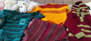 Merci aux dames de Brouckerque qui ont tricoté pour les bébés ! Merci à la maman de la responsable, qui à 86 ans tricote toujours pour les bébés des Restos du Cœur ! ❤️