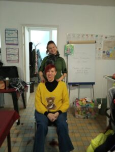 Être belle pour les fêtes, c’est possible, grâce à notre gentille coiffeuse, bénéficiaire et bénévole !